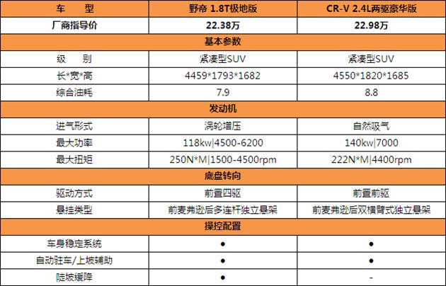 通过对比可以了解到咱们野帝也是紧凑SUV的领先品牌哟!你可以犹豫!但请不要错过!