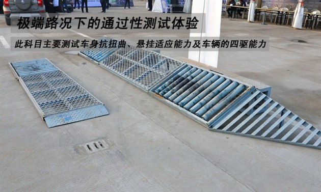 此科目首先考量车辆的抗扭曲能力以及悬挂的适应能力、其次在侧坡的基础上添加滚轮,测试车辆如果没有强大的四驱能力,估计通过的可能性不大。