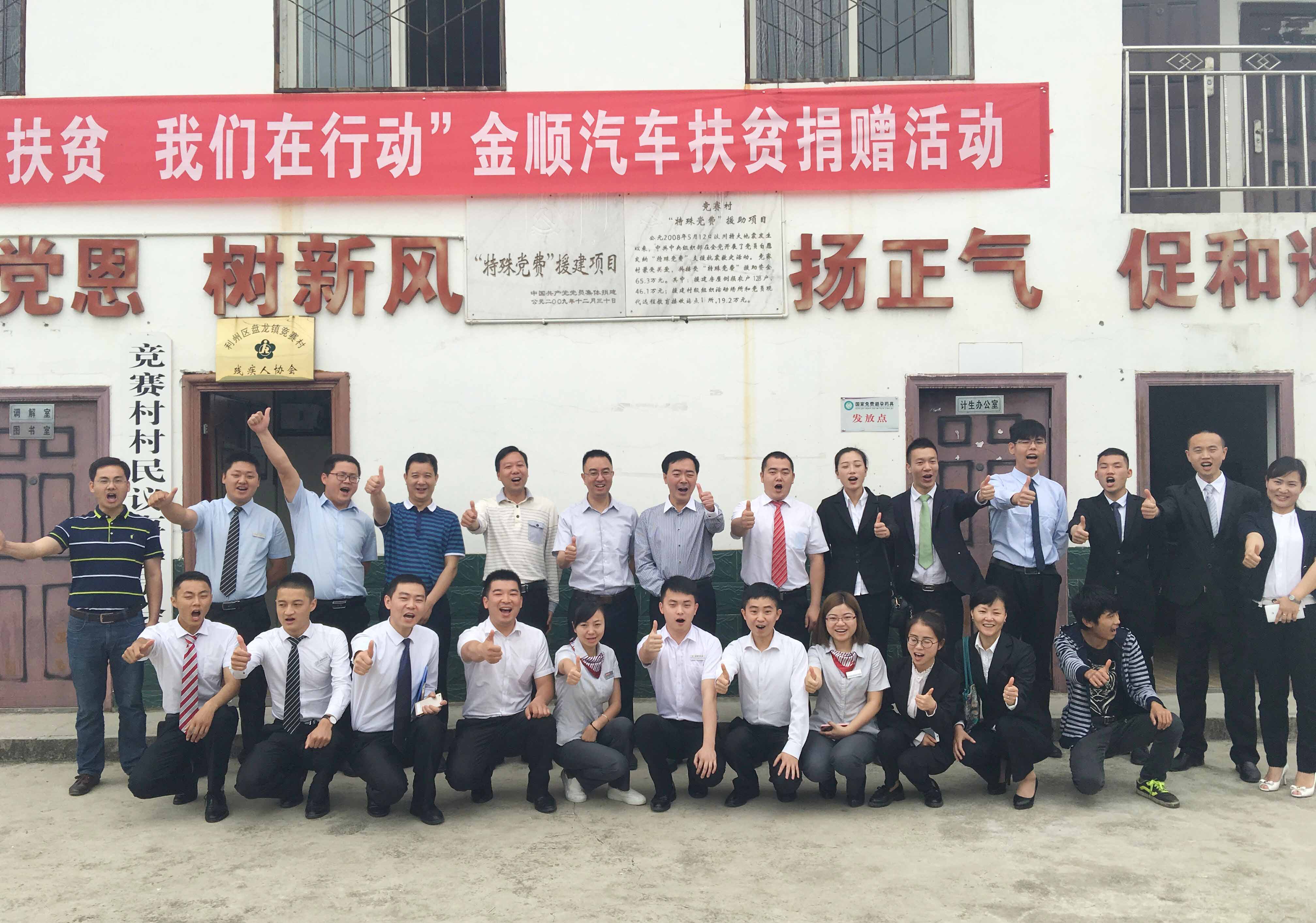 5月31日,广元金顺汽车联合广元市经济技术开发区组织的“爱心扶贫,我们在行动”扶贫捐赠活动在开发区盘龙镇竞赛村委会如期举行。开发区党工委书记伍荣华、开发区党工委副书记王友仁、金顺汽车董事长周光富、金顺员工、以及竞赛村民参加了此次捐赠活动。